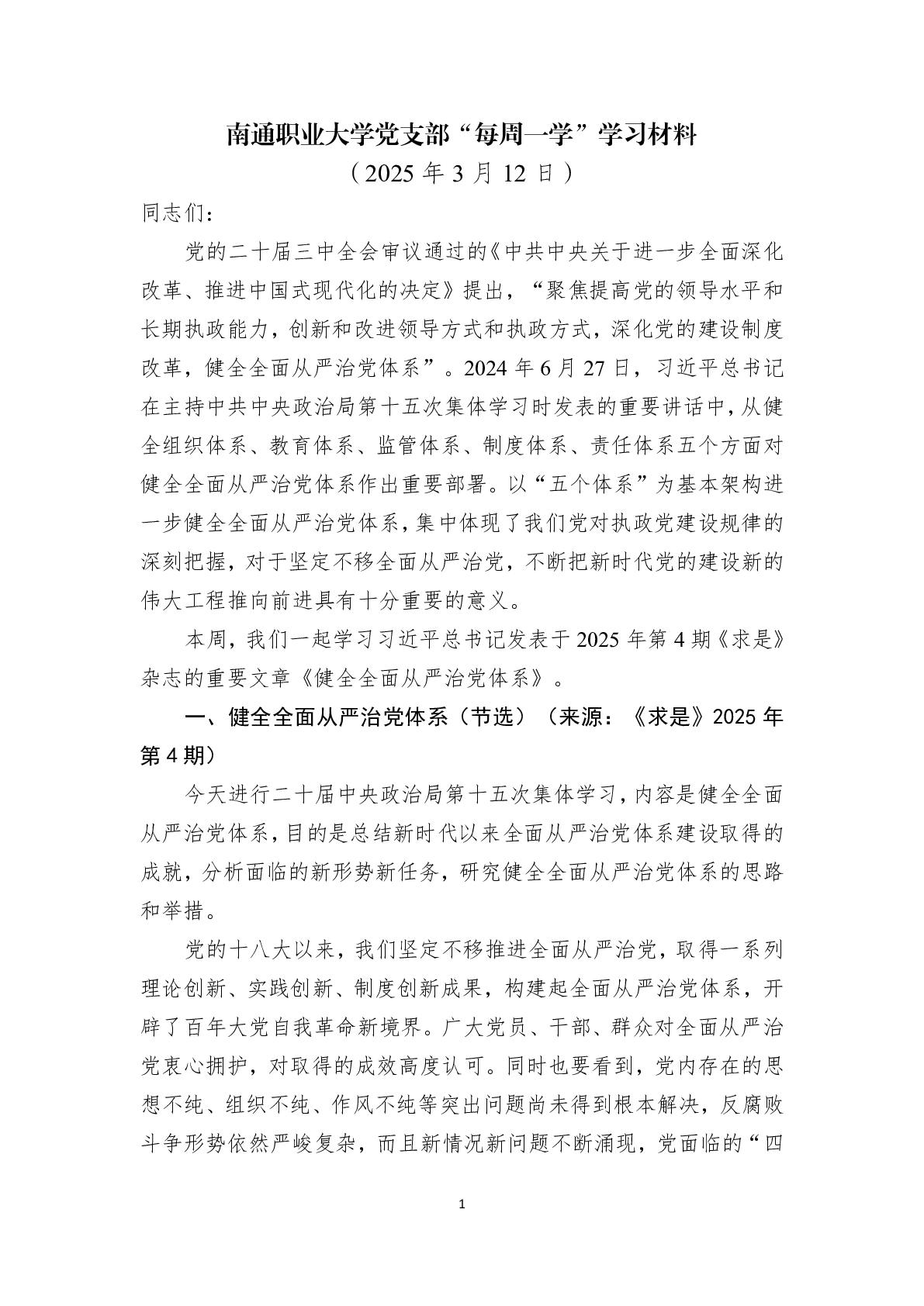 每周一学|第四周学习材料——教工第三党支部