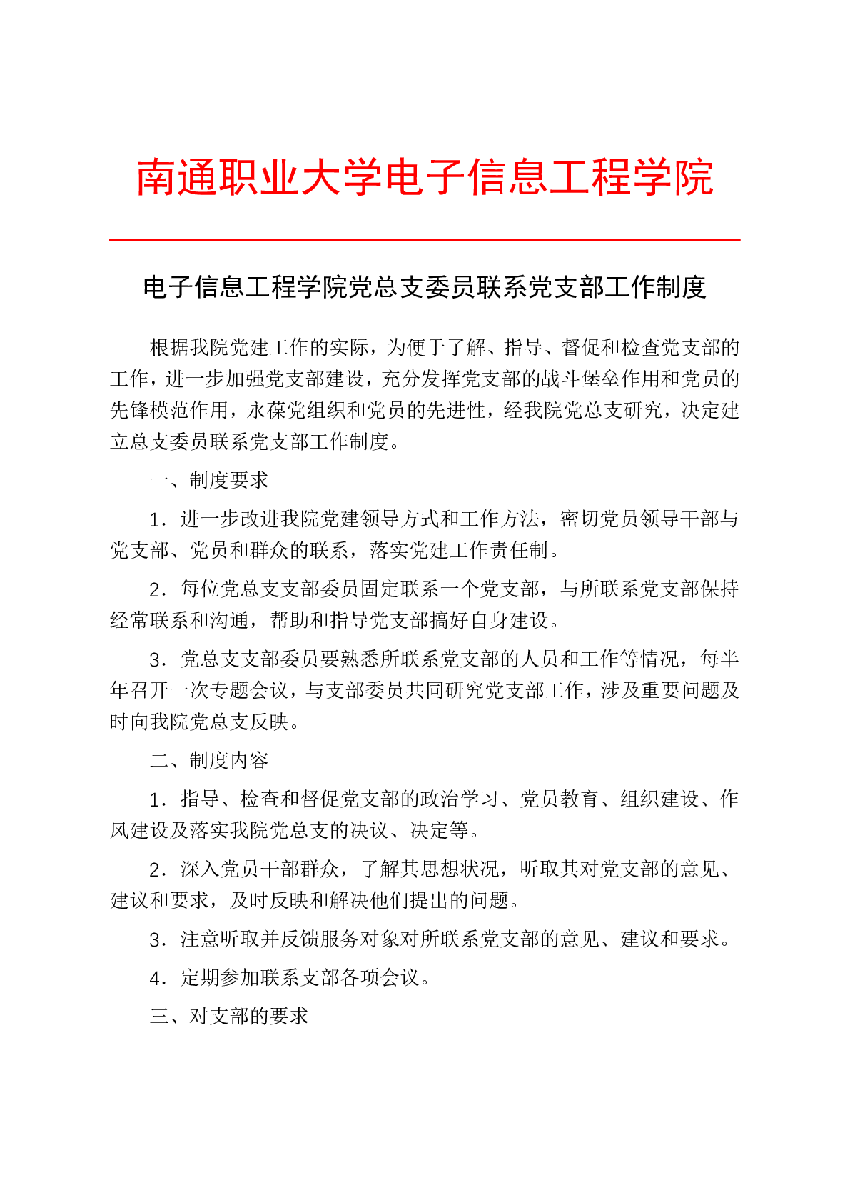 公司党总支委员联系党支部工作制度